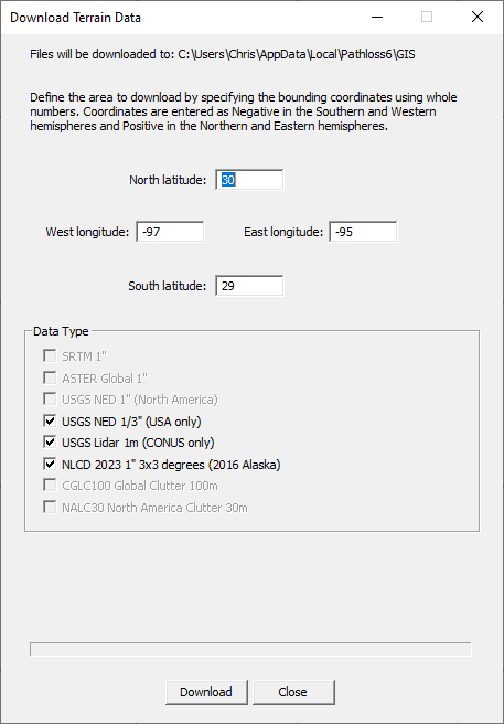 Starting in Pathloss 6.01.00, USGS 1 meter LiDAR data can be automatically downloaded and configured for the United States.
