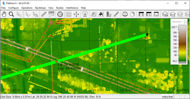 Because some LiDAR points may contain elevations from features such as power transmission lines or other unclassified noise, it may be necessary to verify the resulting path profile.