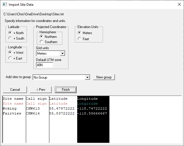 This is a step by step procedure for importing site text files. Usually the site text files are delimited with commas or tabs, but they can also be fixed width. Pathloss 6 is flexible enough to read either.