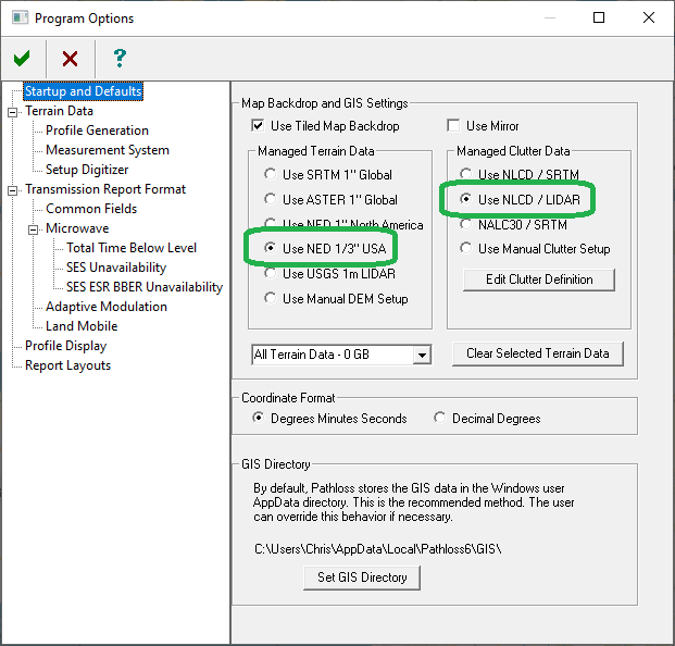 It is not recommended to select USGS 1-meter LiDAR as the Managed Terrain Data. This option is provided for cases where the vertical datum does not match that of the USGS NED data, and terrain profile generation must use LiDAR data instead of NED.