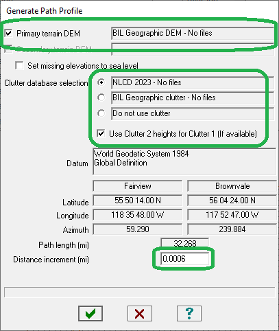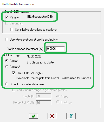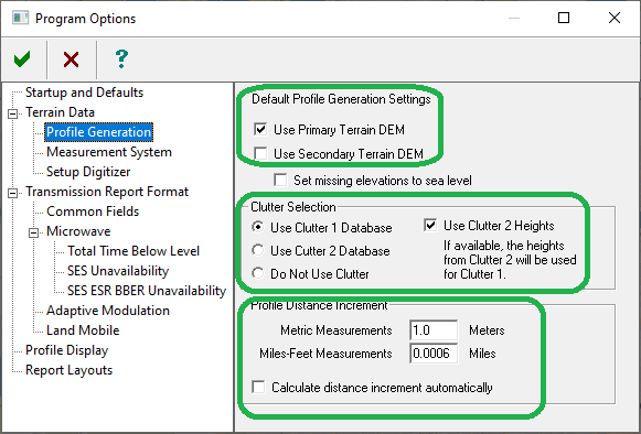 The Profile Generation settings should be configured as follows. The profile distance increment should be set to 0.0006 miles (1 meter) in all cases.